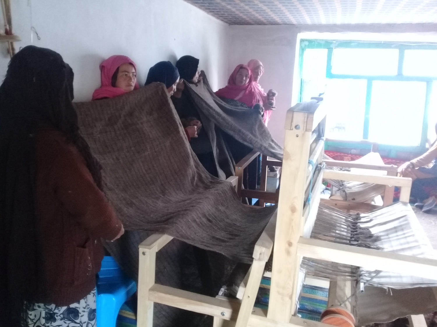 After going through this process, the Barak fabric is gently rolled around a round wooden core. This careful step helps ensure it dries evenly and flat, preserving its quality and beauty.